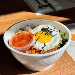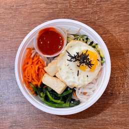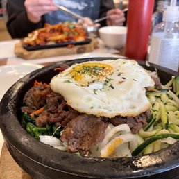 came by w friends and it was safe to say it was delicious :o teokkbokki: no cheese but it's okay. it was still honestly really flavorful and delicious. i know the presentation doesn't hit as well but it was good texture and flavor. although i do wish there was more fish cake (we only had like 4-5) bulgogi lunch combo: it calmer with a lot of food but i wish there was more bulgogi n that it came in bigger pieces. the bulgogi felt more like ground beef. HOWEVER, the flavor of it and the japchae is so delicious i cannot complain too much (the salad is just salad lol) dolsot bibimbap: REALLY GOOD 10/10 THE CRISPY RICE was so good. basically the hot stone pot crisped up the rice REALLY REALLY WELL which is crazy bc it rarely makes so much crisp. def would get again. but egg was not runny :((( kimchi pancake: delicious but nothing ecstatic. it was more doughy and less crispy but still fire banchan: rlly enjoyed the sweet potato banchan
